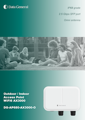 The DG-AP680-AX3000-O is a professional-grade WiFi 6 (802.11ax) outdoor access point from Data General, designed to provide uniform 360° wireless coverage in outdoor and semi-outdoor environments. Built on a dual-band, dual-radio 2×2 MIMO architecture, it delivers AX3000-class performance, ensuring stable, efficient, and high-speed connectivity for multiple simultaneous users.